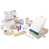 Vše v jednom pouzdře – praktická sada obsahuje širokou škálu výtvarných pomůcek, od barevných fixů, pastelek a vodových barev až po štětce, gumu a pravítka.