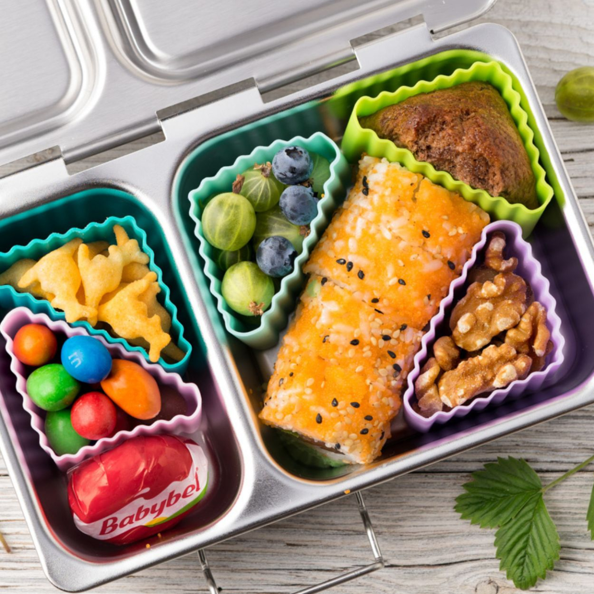 Tyto silikonové misky jsou nejen funkční – elegantně oddělí ovoce, zeleninu, dip i krekry –, ale zároveň podporují kreativní balení svačiny.