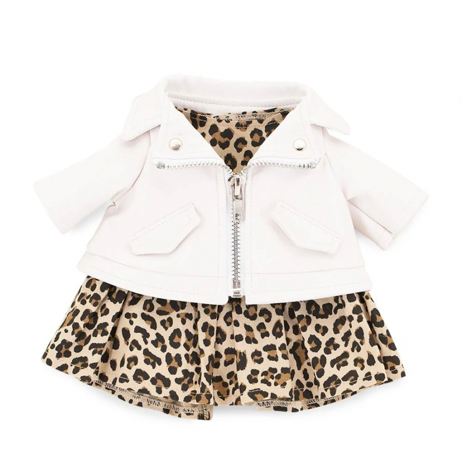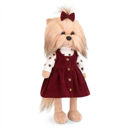 Oblečena je v tmavě modrých tylových šatech a na hlavě má modrou mašli. Tento outfit mohou děti převlékat za jiné oblečky pro pejsky Lucky Doggy.
